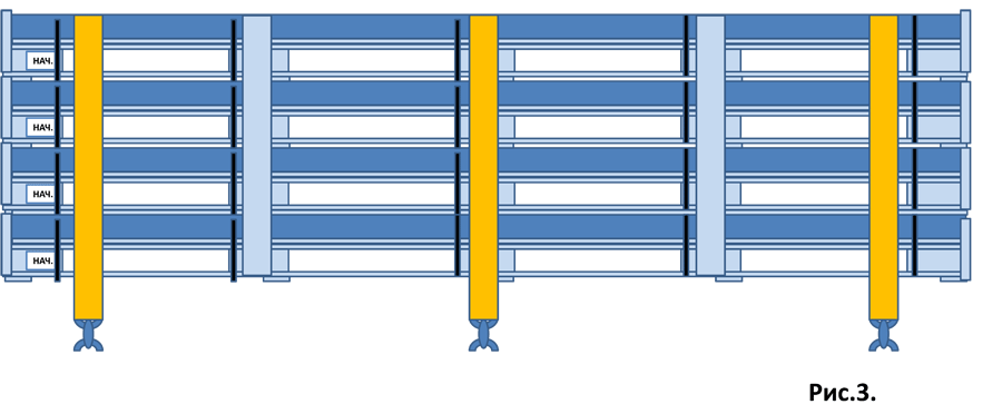- поддоны укладываются друг на друга по опорным брускам.