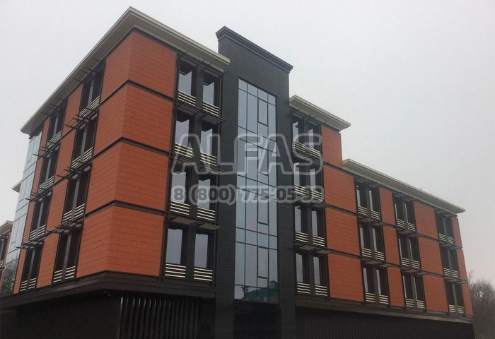 Монтаж НВФ из композита / керамогранита / металлокассет / фиброцементных панелей / натурального камня