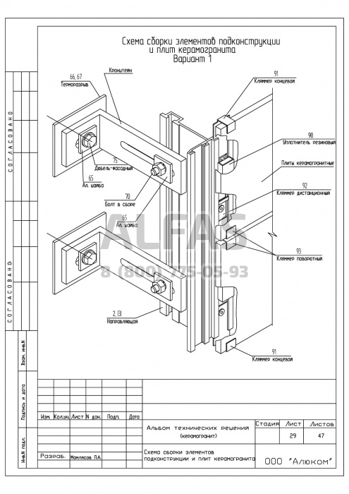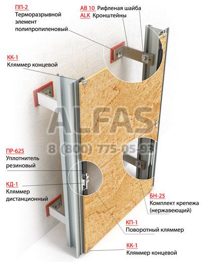 Alucom KG можно использовать как в варианте с резиновыми уплотнителями, так и без них. В этом случае используется прижимной кляммер новой ОРИГИНАЛЬНОЙ КОНСТРУКЦИИ. Кляммеры могут, по желанию Заказчика, окрашиваться в цвет материала облицовки.