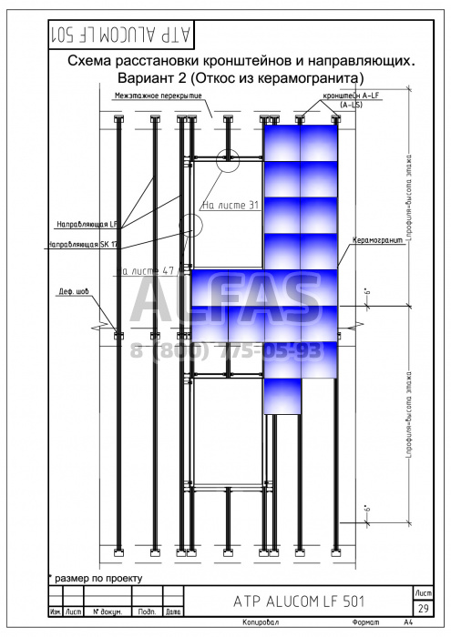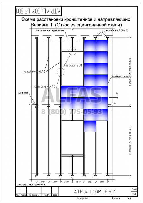Alucom LF 501 – алюминиевая подоблицовочная конструкция, с креплением только в межэтажные перекрытия.