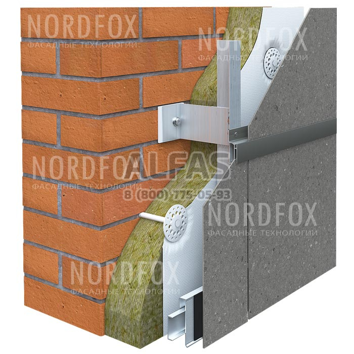 Фасадная система NordFox MLK-v-300 под Фасадный керамогранит
