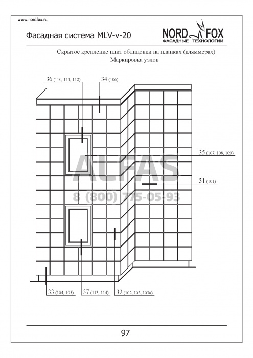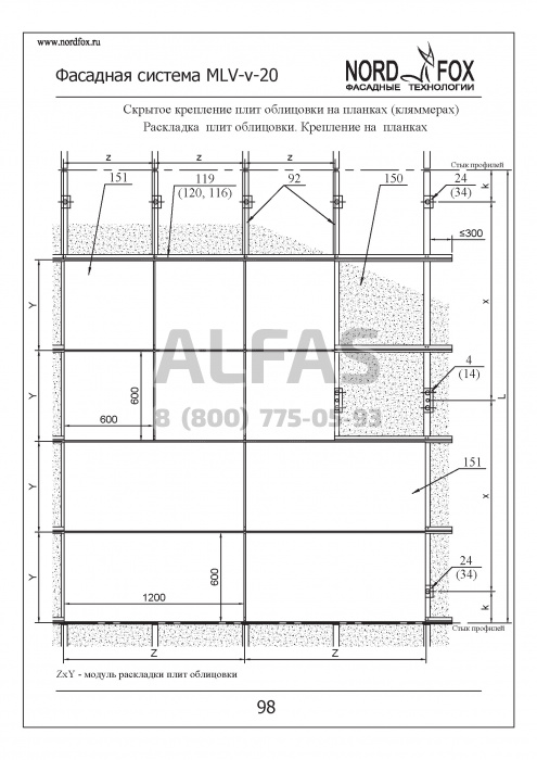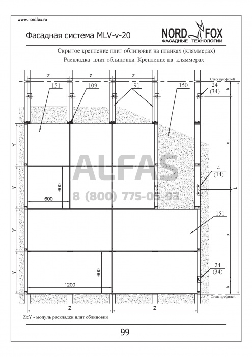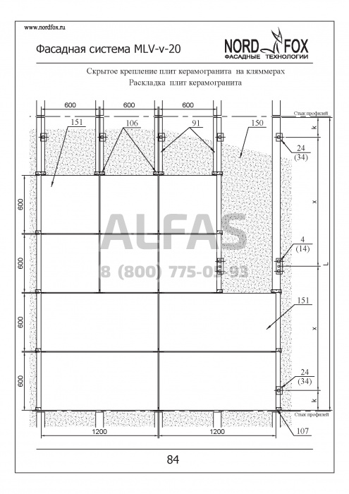 Фасадная система NordFox MLV-v-20 (На пропилах) под Фасадный керамогранит