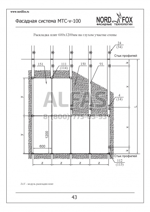 Максимальные размеры облицовки: 1000х1000мм, 1200х600мм (горизонтальное и вертикальное расположение).