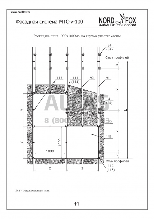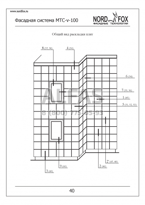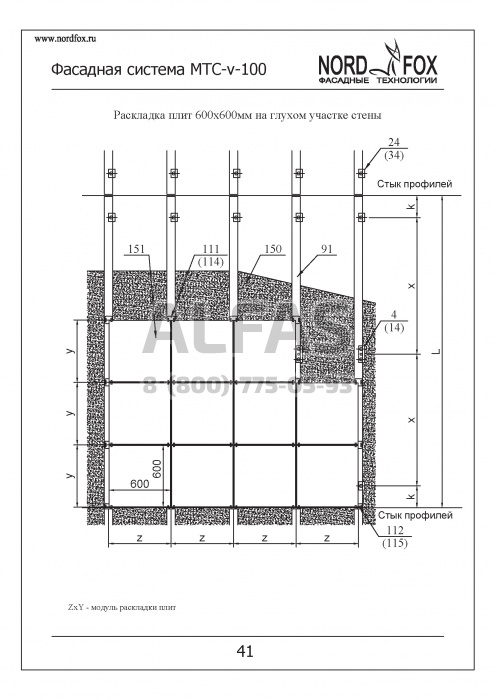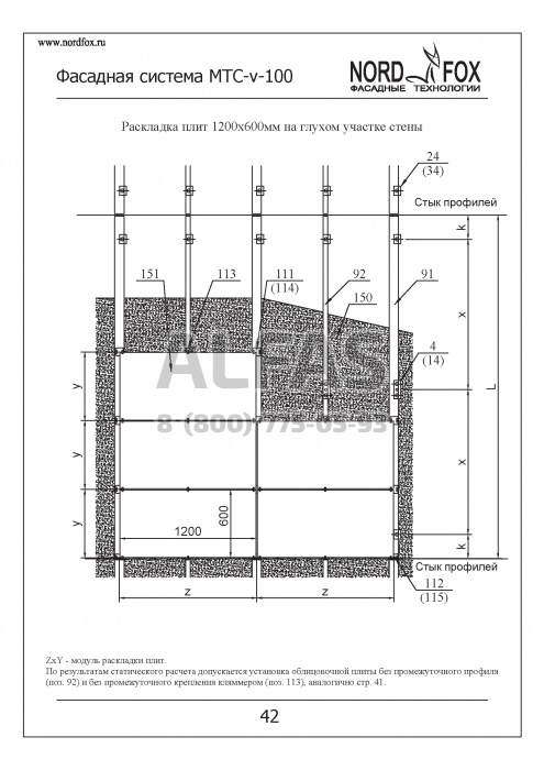 Способ крепления облицовочного материала: кляммерами видимого типа.