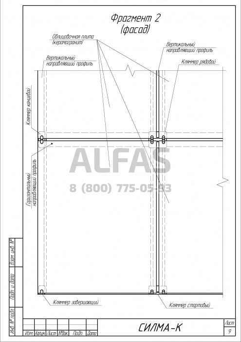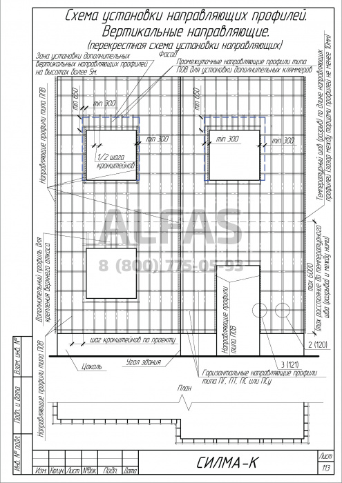 Вертикальная фасадная система Силма – разновидность металлического каркаса вентилируемого фасада, отличительной особенностью которой является установка несущего оцинкованного Т- образного профиля подсистемы в вертикальном направлении. Фасадный кронштейн данной системы монтируется на несущую стену и обеспечивает вылет облицовки фасада на величину до 350 мм с применением утеплителя толщиной до 250 мм.