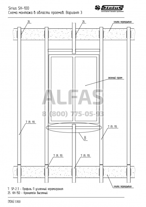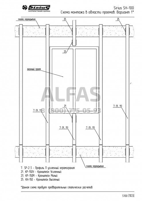 Система используется на зданиях, где материал межэтажного заполнения, а попросту говоря «стены» не выдерживают нагрузок Навесной Вентилируемой Системы. В таких случаях применение системы SH-100 будет оптимальным решением проблемы.