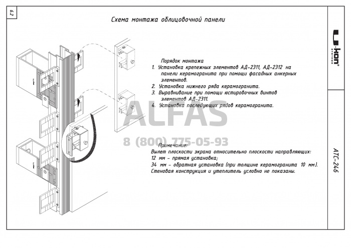 Система используется для невидимого способа крепления плит керамического гранита и натурального камня.