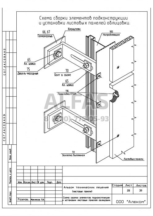Alucom F — алюминиевая подоблицовочная конструкция, выполненная из сплава А6060Т66.