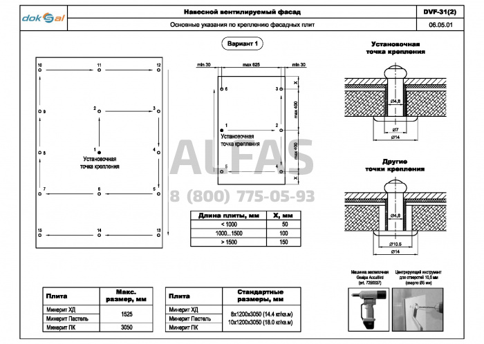 Серия DVF-31(2) предназначена для крепления фиброцементных панелей со скрытым креплением.