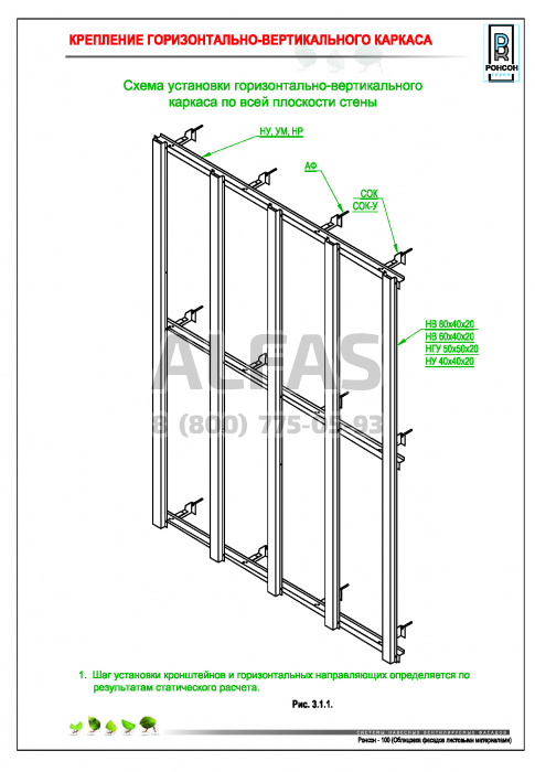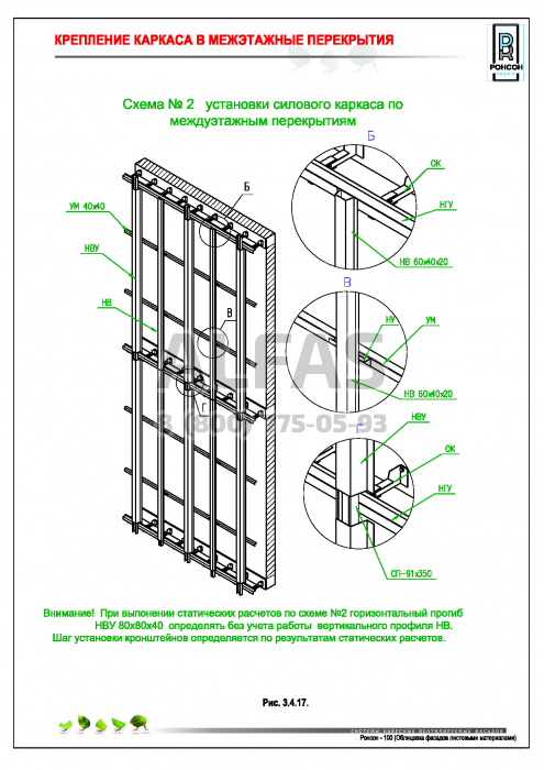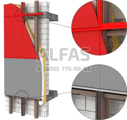 Возможна система крепления как по всей поверхности стены, так и исключительно в межэтажные перекрытия.