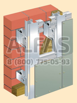 Система предназначена для крепления облицовки выполненной из любых плоских листовых материалов применяемых для облицовки фасадов.