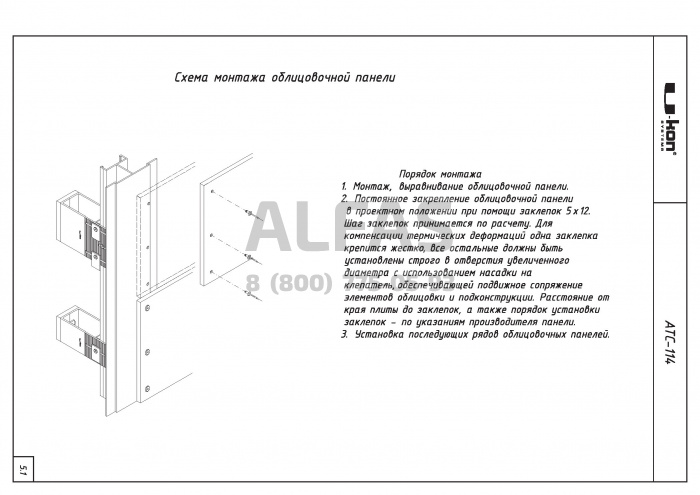 Расстояние от краев плиты и шаг установки заклепок принимается по рекомендациям изготовителей фасадных панелей.