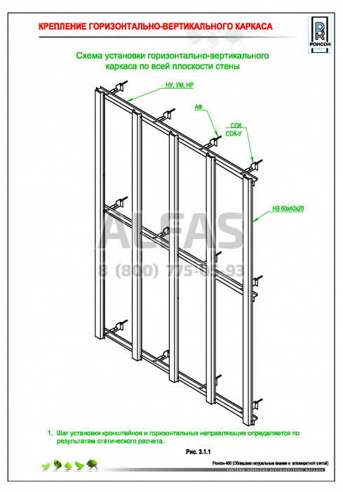 Система НВФ “РОНСОН-400" для навеса натурального камня обладает рядом преимуществ: