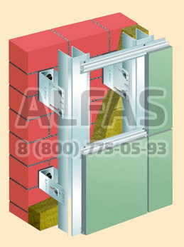 Целесообразно применение системы для отделки стен цокольных и первых этажей здания, или на зданиях с повышенными требованиями к архитектурным решениям. Позволяет монтировать облицовочные панели с вертикальным смещением относительно друг друга.
