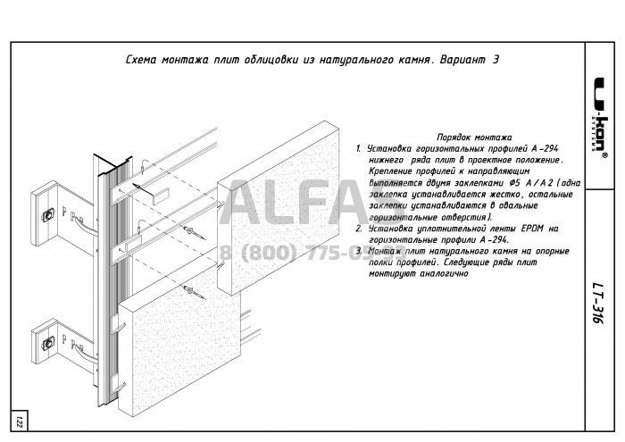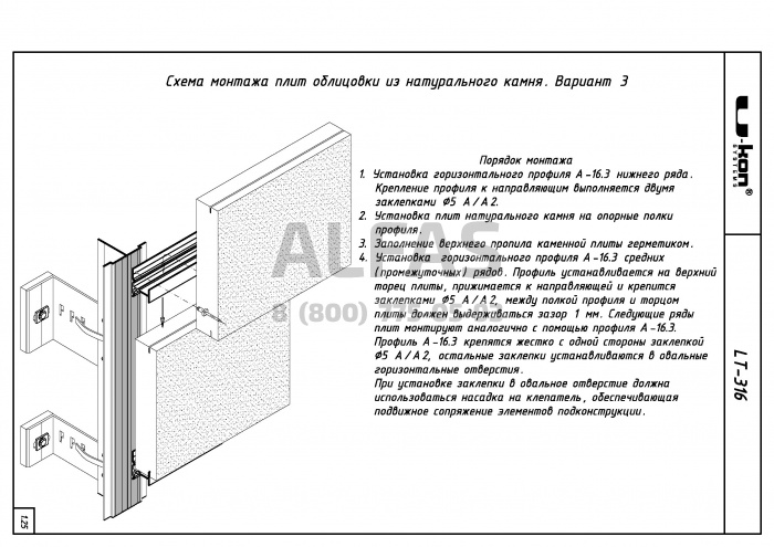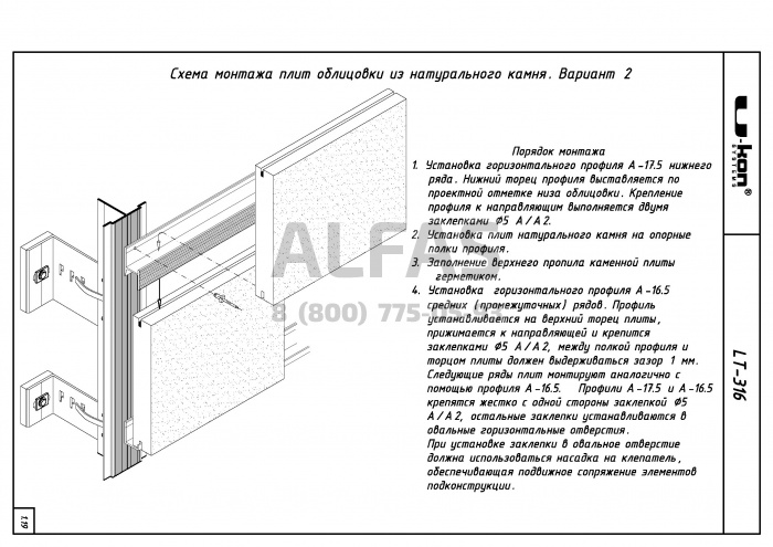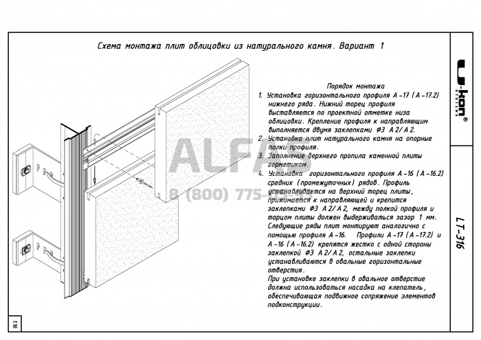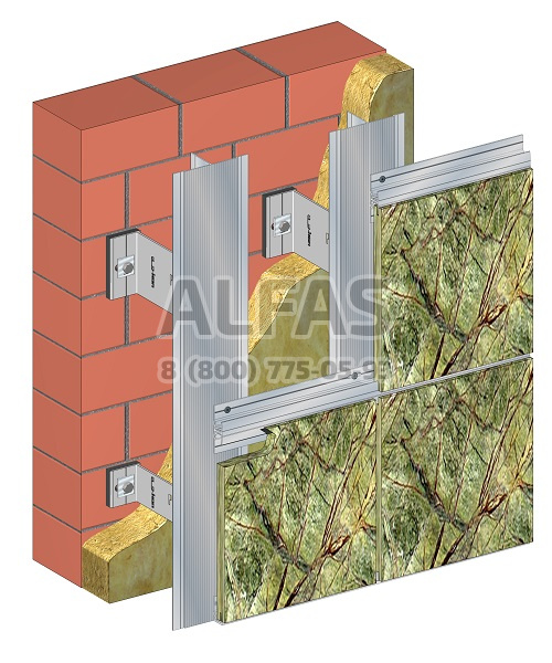 Система предназначена для скрытого способа крепления облицовочных панелей из камня.
