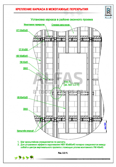 Возможна система крепления как по всей поверхности стены, так и исключительно в межэтажные перекрытия.