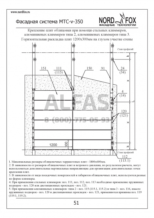 Фасадная система NordFox MTC-v-350 (Горизонтальное) под Терракотовые панели и объёмная керамика
