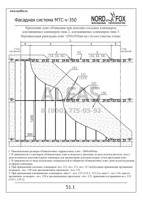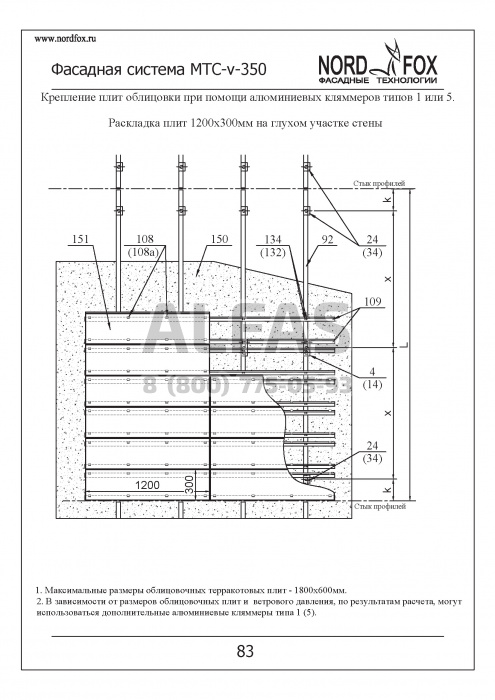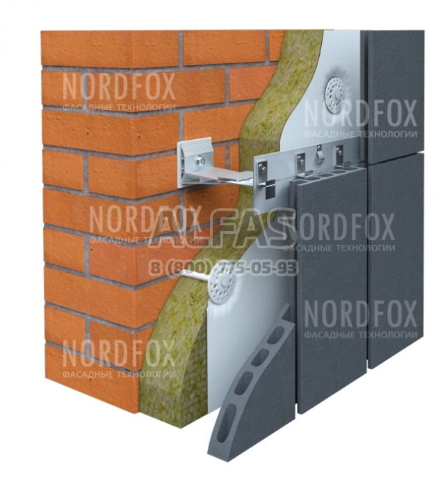Фасадная система NordFox MTC-v-350 (Вертикальное) под Терракотовые панели и объёмная керамика