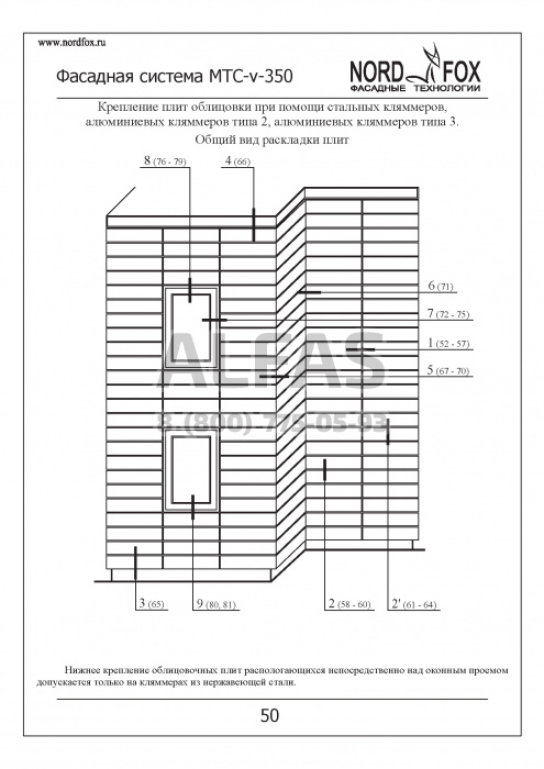 Cпособ крепления облицовочного материала: кляммеры скрытого крепления.