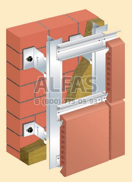 Система предназначена для скрытого способа крепления терракотовых керамических панелей.