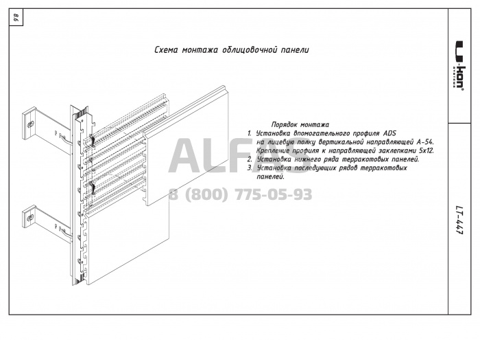 Система предназначена для скрытого способа крепления терракотовых керамических панелей.